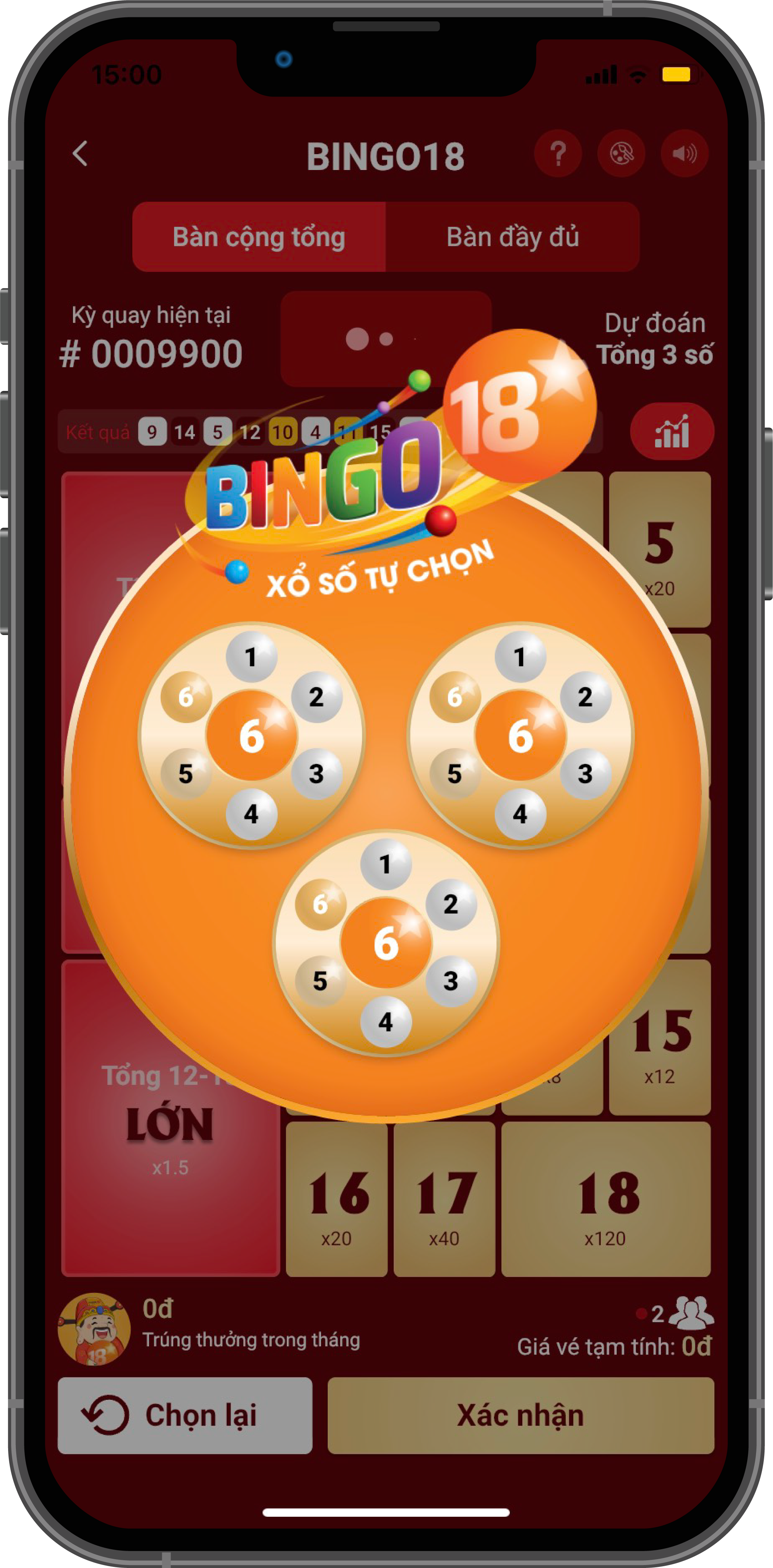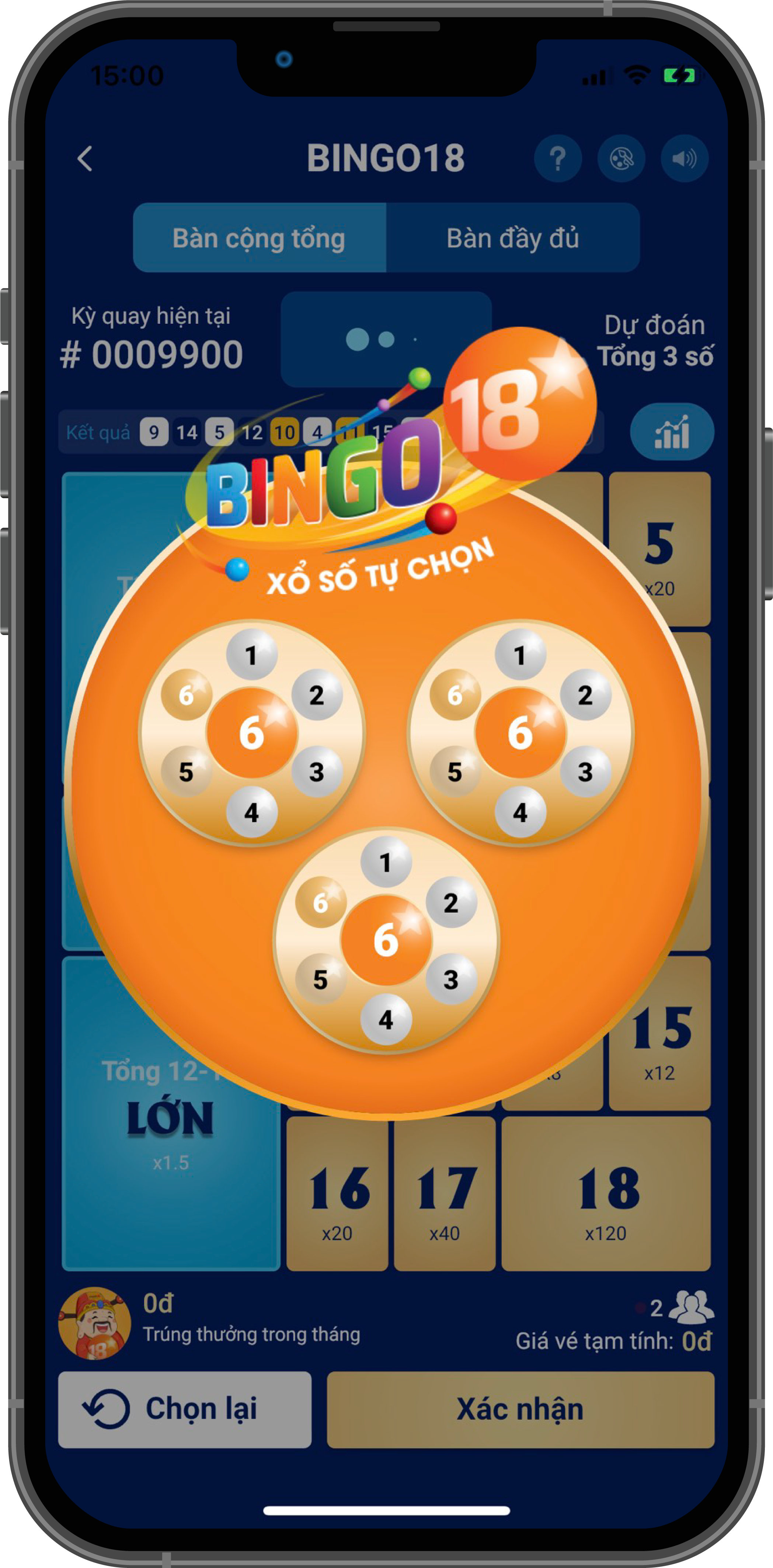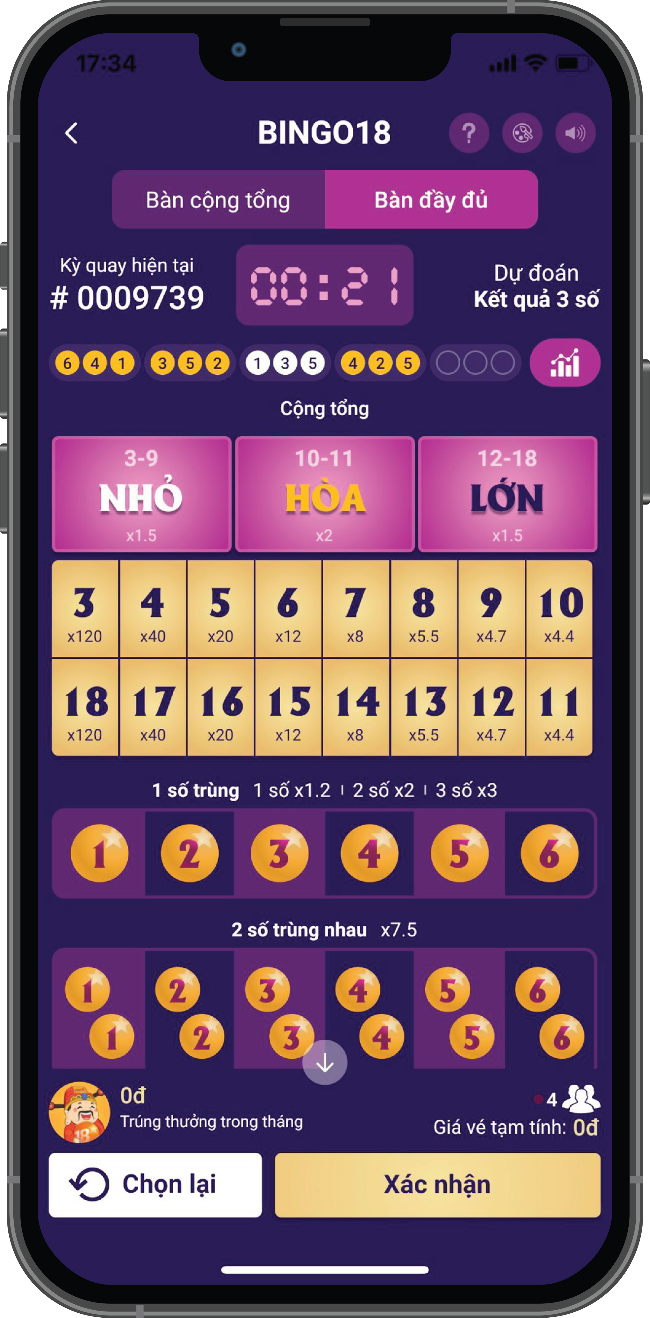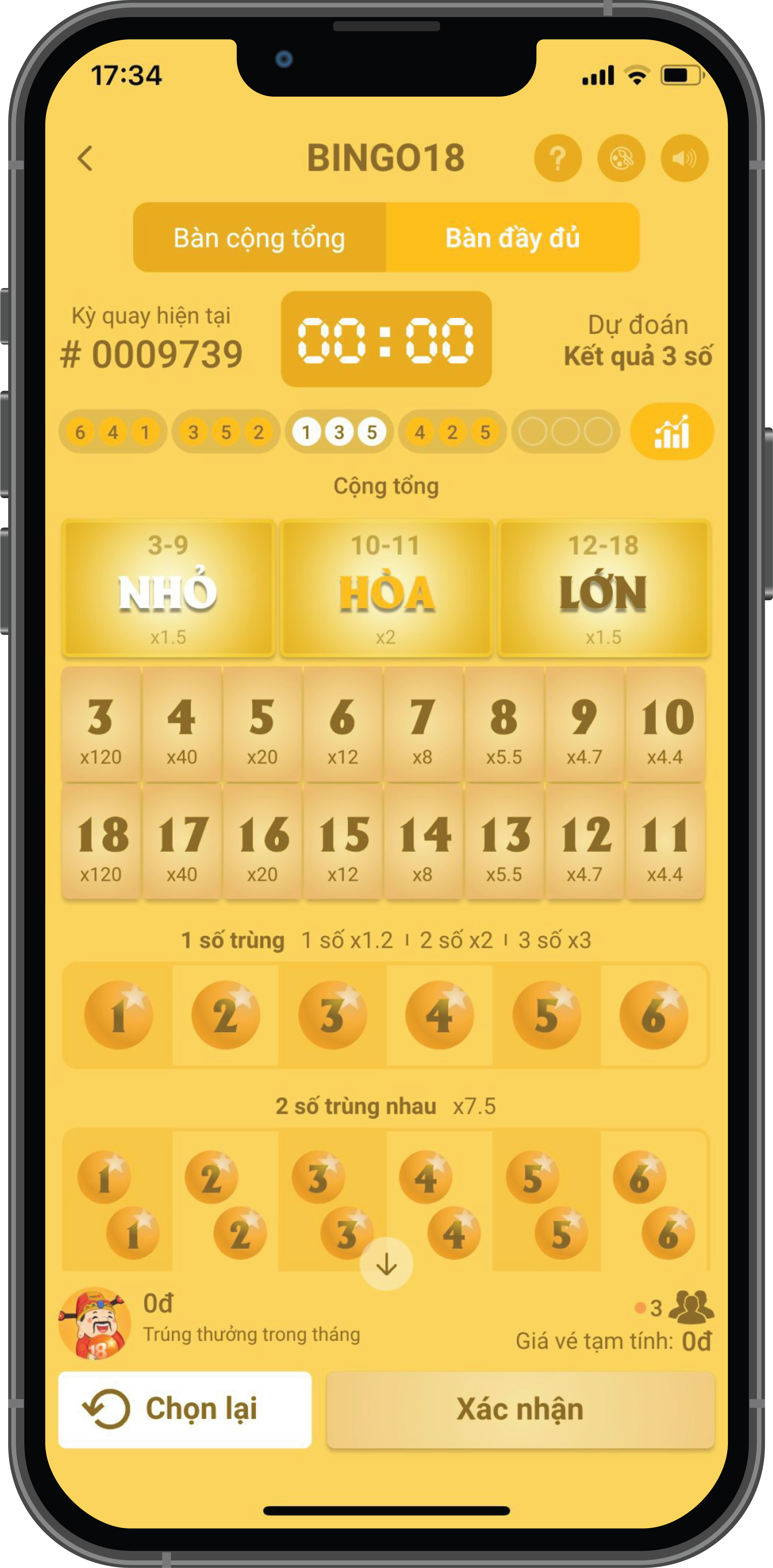 Dự đoán tổng 3 số kết quả từ 3 đến 18.