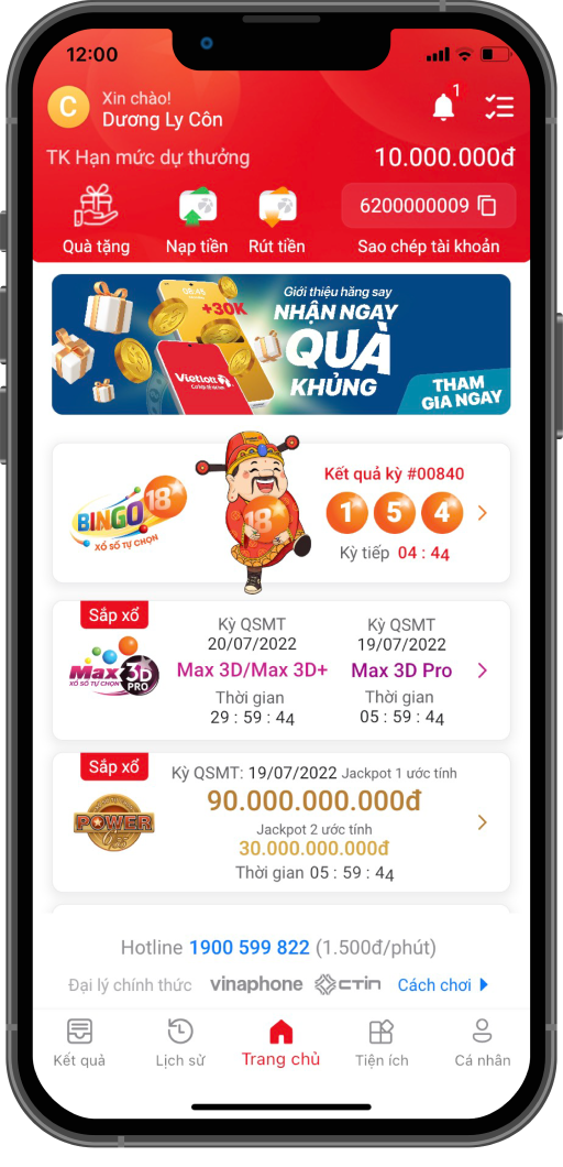 Vietlott SMS trên ứng dụng: